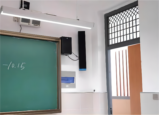 另外,教室音響的教學(xué)級(jí)專業(yè)擴(kuò)聲揚(yáng)聲器部分采用的是一體化設(shè)計(jì),黑色木紋邊框,集多功能于一體,可實(shí)現(xiàn)聲音精準(zhǔn)區(qū)域覆蓋??砂惭b在黑板的一側(cè),安裝簡(jiǎn)單,使用便捷,配套的無(wú)線麥克風(fēng)即連即用。