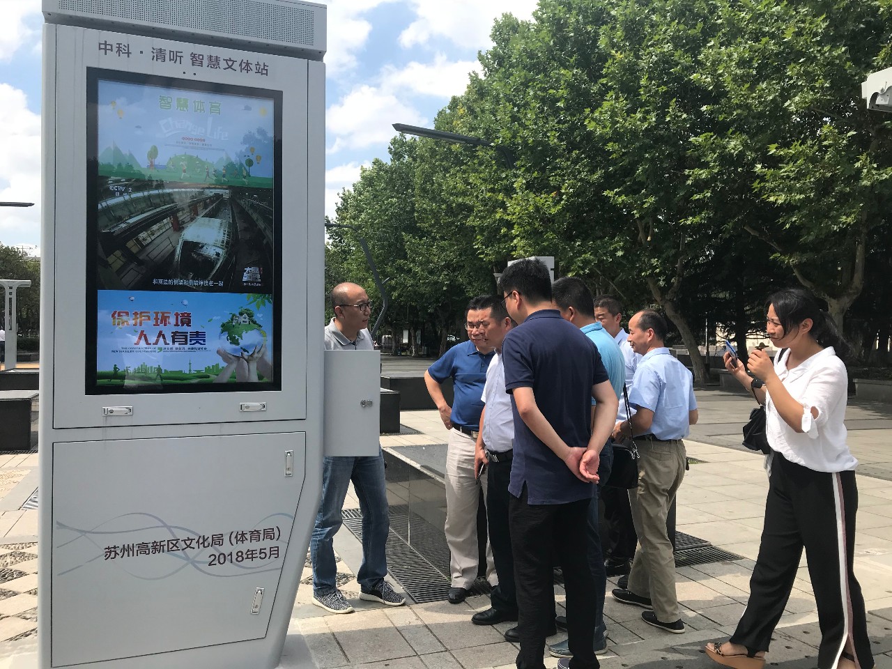 ◆2018年6月23日,銅陵市銅官區(qū)區(qū)委常委楊友進(jìn)、區(qū)政府副區(qū)長巫永生、國家獅子山高新區(qū)黨工委書記王基宏、區(qū)委宣傳部常務(wù)副部長高鵬、區(qū)招商局長余建國、區(qū)商務(wù)局長查日春等一行前往蘇州高新區(qū)馨泰花苑智慧廣場舞示范點,就智慧體育便民設(shè)施進(jìn)行考察。