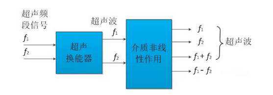 基于超聲的聲頻定向傳播技術(shù)是一種可使聲音以波束在一定方向傳播的新聲源技術(shù),其基本原理是將可聽聲音信號調(diào)制到超聲載波信號之上,并由超聲換能器發(fā)射到空氣中,不同頻率的超聲波在空氣中傳播的過程中,由于空氣的非線性聲學(xué)效應(yīng),這些信號會發(fā)生交互作用和自解調(diào),進(jìn)而產(chǎn)生頻率為原超聲頻率之和(和頻)與頻率之差(差頻)的新聲波。若超聲波選取合適,那么差頻聲波則可落在可聽聲區(qū)域。這樣,借助超聲波本身的高指向性,實(shí)現(xiàn)了聲音定向傳播的過程。