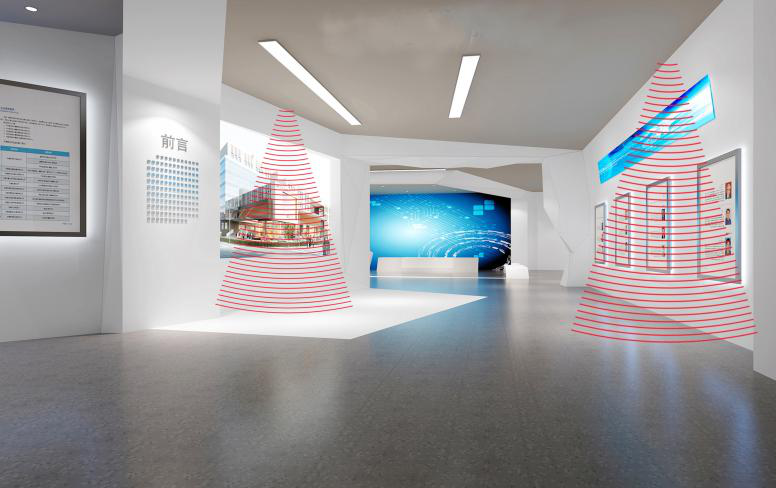 在展示展覽行業中,定向音箱的應用尤其受歡迎。科博文化館、企業展廳、展覽展會等場所通過應用定向音箱實現定向語音分區講解、定向語音導覽等功能,多個音箱同步工作不會串音,各音區相對獨立。一來可節約勞動力成本,實現自助語音服務;二來實現環境聲場均衡,參觀氛圍體驗感愈佳。